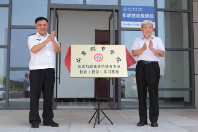 魏平介绍了山东体育学院及武术学院的办学特色、学科专业发展情况。他指出,山东体育学院作为山东省唯一的体育高等学府,在服务体育强国、文化强国战略及地方经济社会的发展中,发挥了不可替代的重要作用。武术学院作为特色鲜明的二级学院之一,近几年在师资、团队、竞赛训练、专业建设等方面取得了长足的发展。他认为,教育实习是高校人才培养过程中的关键环节,也是检验人才培养成效的重要抓手,更是学生积累工作经验,走向工作岗位的必经阶段。他表示,在今后的实习安排中,将优先选派品学兼优的学生来警察学院实习,发挥我们的专业优势,尽全力提升学生的实战技能,并希望以此次揭牌仪式为契机,本着互利共赢、共同发展的原则,进一步加强两校之间的沟通交流,期待着在其他方面有更多的合作!