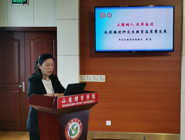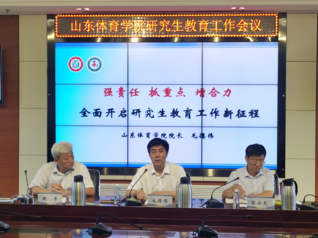 魏平传达了《关于推动新时代山东省研究生教育改革发展的实施方案》文件精神,指出研究生教育在学校发展中的地位和作用愈发重要,要切实提高政治站位,强化责任担当,不断优化学科专业布局,深化研究生培养模式改革,培养出更多的高层次应用型体育人才,为新时代现代化强省建设提供坚实的人才和智力支撑。