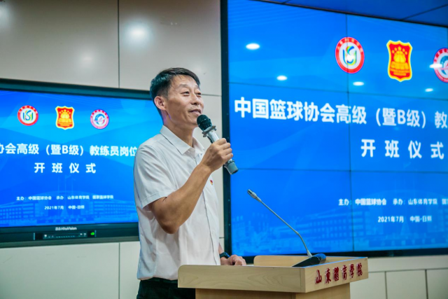 7月28日上午,由中国篮协主办、山东体育学院国家篮球学院承办的2021年中国篮协高级(暨B级)教练员岗位培训班开班仪式在山东体育学院日照校区举行。