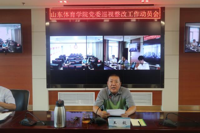 8月9日,山东体育学院党委巡视整改工作动员会在济南校本部召开,部署安排学校落实省委巡视反馈意见整改工作。党委书记王毅发表讲话,要求围绕省委巡视反馈意见,进一步统一思想、明确任务、强化举措、落实责任,坚决把问题全面彻底整改到位。通过巡视整改,改出凝聚力、战斗力和精气神,推动思想再解放、改革再深入、工作再抓实,实现学校高质量发展。党委副书记、院长毛德伟主持会议。党委副书记张云龙部署落实省委巡视反馈意见整改工作。