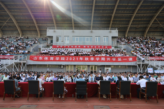 9月9日下午,济南校区和日照校区同步举行2021年秋季学期“开学第一课”,活动对全体在校生进行了党史学习教育引领及疫情防控指导。山东体育学院党委委员、党委宣传部部长、日照校区管委会副主任连增威,学生处处长杨蕾,各二级学院书记、副书记、辅导员及各有关职能部门负责同志出席大会。日照校区管委会副主任、竞技体育与体育教育学院党总支书记兼副院长赵孝彬主持日照校区“开学第一课”,党委宣传部副部长钱芳主持济南校本部“开学第一课”。