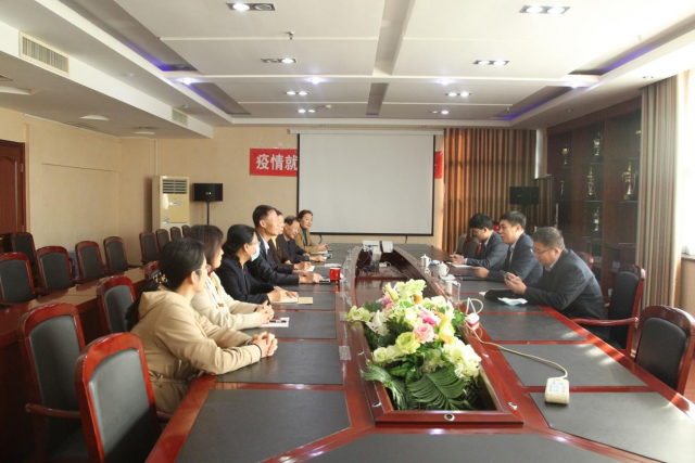 连增威首先致辞,对张玉龙一行的来访和传经送宝表示热烈欢迎和衷心感谢,并介绍了我校的基本情况、办学特色及马克思主义学院建设情况。党委宣传部副部长、机关第一党总支书记于爱丽介绍了学校文明校园创建情况。张玉龙介绍了滨州医学院和马克思主义学院的基本情况及本次学习考察的目的、任务。