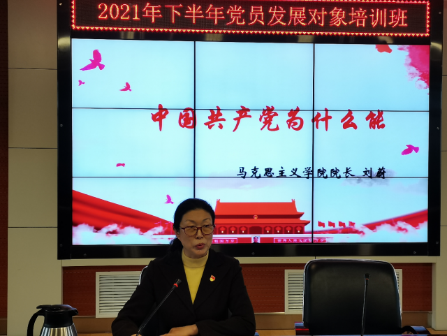 马克思主义学院院长刘蔚做了题为《中国共产党为什么能》的专题报告,报告内容详实、立意深刻,帮助大家进一步了解中国共产党的辉煌历史和丰功伟绩、了解中国共产党的光荣特质和使命担当,激发了大家听党话、跟党走,立志报效祖国投身中国特色社会主义建设的热情,坚定了为实现中华民族伟大复兴中国梦的信心和决心。