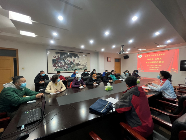 为深入推进基层党组织的党史学习教育,落实立德树人根本任务,12月16日下午,学校党委委员、副院长、日照校区管委会主任毛莉虹来到联系的党支部——竞技体育与体育教育学院党总支教工第四党支部,参加主题党日活动,并与各位教师进行交流。本次主题党日主题为“树师德正师风推进课程思政建设”,第四党支部全体党员参加。