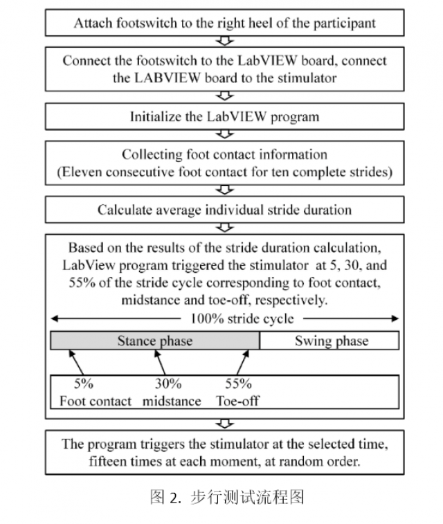 为了测量到运动过程中的稳定数据,团队研制了FootSwitch软件进行步行过程中的电刺激测试。该系统可以自动搜集个性化的步态信息,以保证电刺激发生在特定的步态时相中。