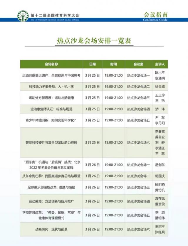 本次热点沙龙共围绕:运动训练奥运遗产、科技助力冬奥备战、运动处方新进展、运动康复师认证、青少年体能训练、智能科技硬件与复合型团队助力竞技、奥运与疫情、奥运参赛总结与展望、足球俱乐部的股权改革、运动戒毒、学校体育改革、动商研究十二个主题展开学术讨论,由各研究领域的知名专家主持。