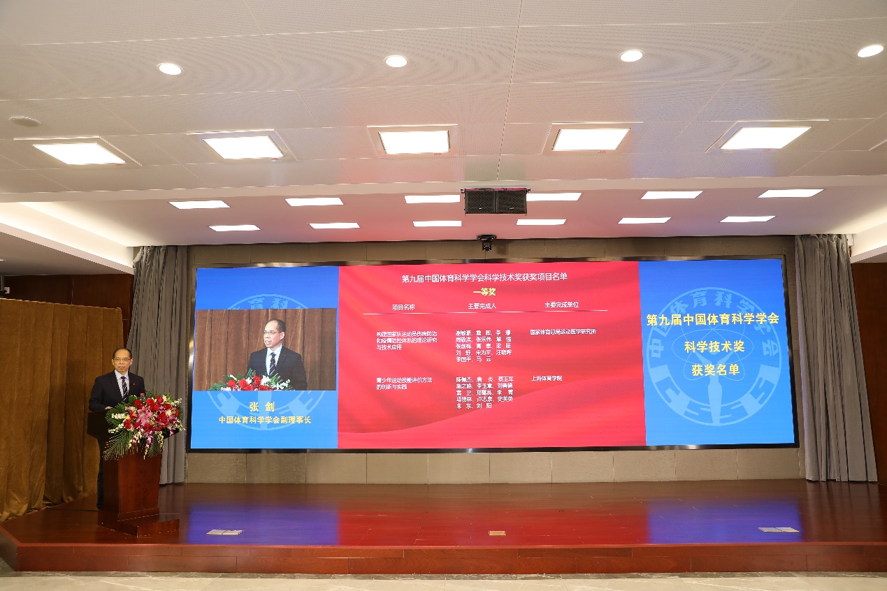中国体育科学学会副理事长张剑宣布第九届中国体育科学学会科学技术奖一、二、三等奖获奖名单