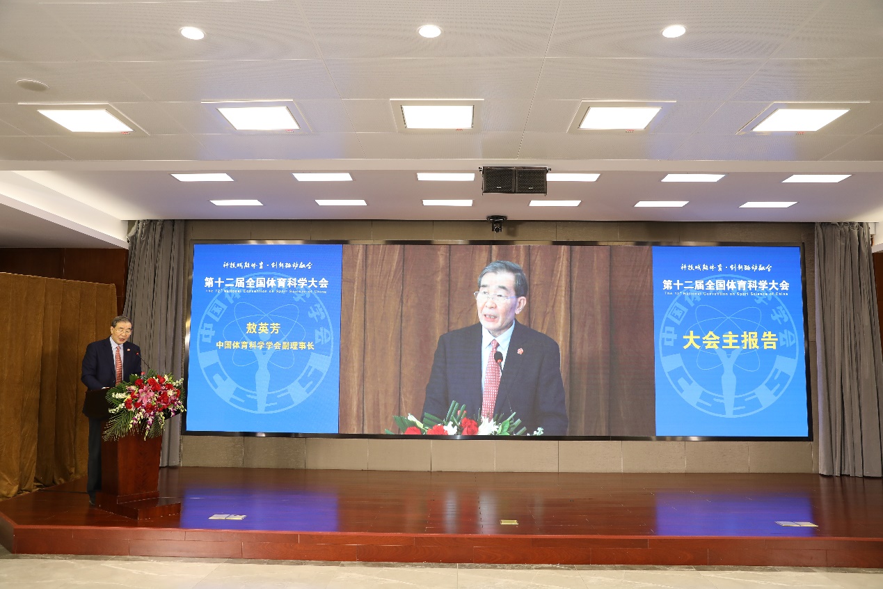 中国体育科学学会副理事长敖英芳主持大会主报告