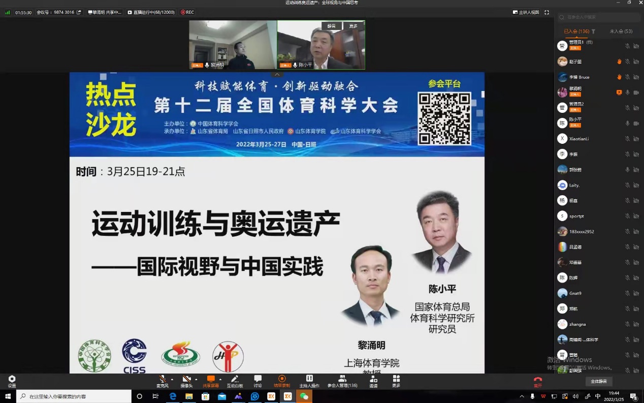 第十二届全国体育科学大会在大会组委会的精心组织下,各承办单位凝心聚力,务实笃行,在认真做好疫情防控的同时,扎实做好了筹备工作的每个环节,将每个细节做实做细。大会先后多次召开筹备工作推进会,统筹整合有关力量,密切协作,有序推进大会各项筹备工作。为保证大会学术工作顺利进行,山东体育学院组建了200余人的志愿者师生团队,出色地完成前期线上会议培训工作、专家邀约、专家测试和所有专题口头报告、墙报交流的学术准备工作,负责所有线上会场专家学者的对接服务工作,为大会的圆满完成提供了有力的保障。大会主赞助商南通铁人运动用品有限公司为大会顺利举办做出了贡献。同时,大会举办了“体育科技走进日照”宣传活动,聘任奥运冠军林伟宁为“体育科技走进日照”宣传活动形象大使,进一步提升了大会的社会影响力。