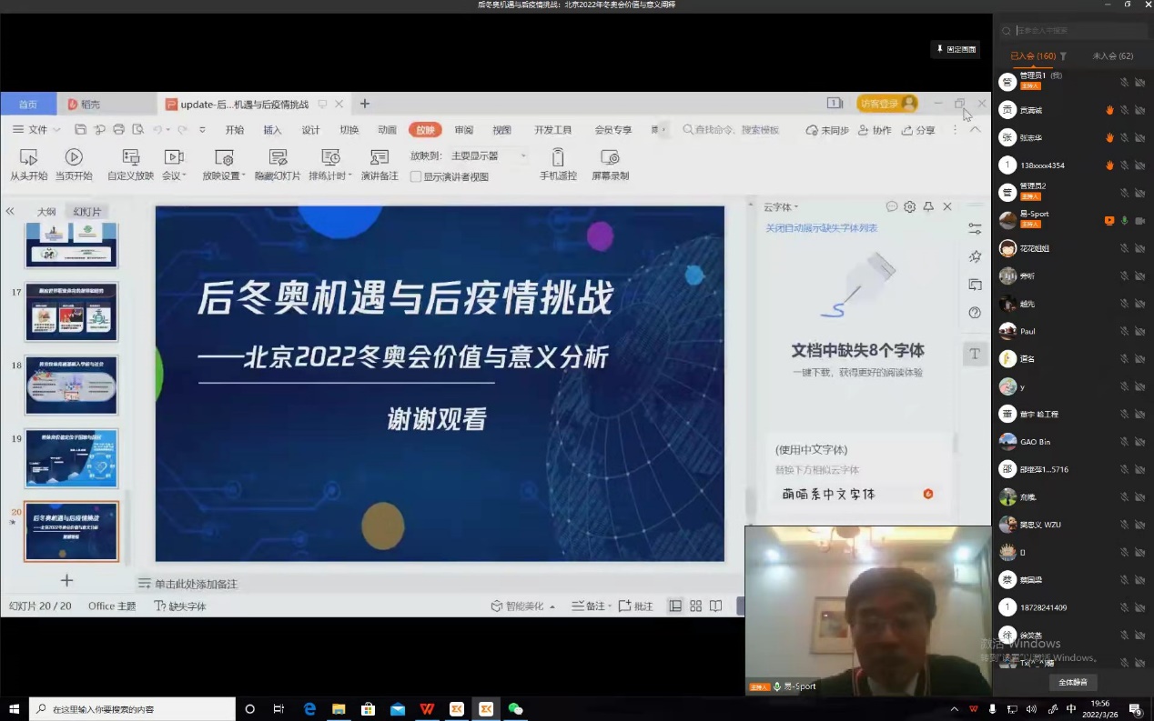 本届大会坚持高层次、高标准、高质量办会标准,秉承成果交流、信息交流的办会宗旨,努力实现为体育强国和健康中国建设提供科学引领和科技支撑的办会目标,为全国体育科技工作者展示最新体育科研成果、科技成果和交流科技信息提供了优质的平台。本届大会是在疫情防控背景下依托信息技术平台举办的国内最具权威性和影响力、最大规模和最高层次的综合性体育学术会议,在学会信息化进程中具有里程碑意义,开启了我国大型学术会议线上交流的先河,为我国大型学术交流模式创新作出了引领性的示范。