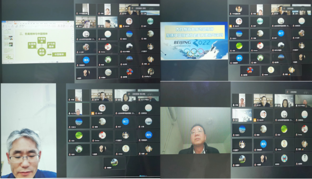 2022年4月29日,马克思主义学院开办“思政+体育”学术论坛。首期论坛以线上形式举行,与会专家学者和教师以“北京冬奥精神融入思政课教学专题研讨”为主题,围绕学习贯彻落实习近平总书记在北京冬奥会、冬残奥会总结表彰大会上发表的重要讲话,开展如何将北京冬奥精神融入思政课建设的学术讨论。山东体育学院副院长张佃波应邀参加论坛并作主题报告。