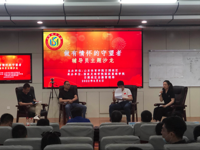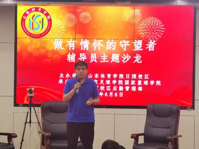 6月7日晚,日照校区在培训楼报告厅举办第一届辅导员主题沙龙——“做有情怀的守望者”。活动由日照校区学团工作部主办,国家足球学院国家篮球学院、校区后勤管理部承办。