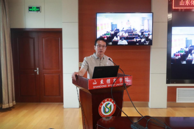 张佃波宣读2021年度二级学院学科专业建设考核结果。依据《关于印发<山东体育学院二级学院学科专业建设考核实施方案(修订)>的通知》(鲁体院院字〔2021〕64号),对各二级学院2021年度学科专业建设成果进行考核。与2020年度相比,各二级学院学科专业建设情况都有了质的飞跃。