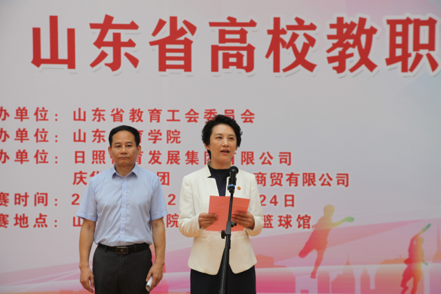 山东体育学院院长毛莉虹,比赛组委会副主任、山东省教育工会主席宋志明,比赛组委会裁判长、乒乓球国际级裁判丁文,比赛组委会副主任、山东体育学院副院长张疆之,山东体育学院副院长孙乐为、张佃波参加开幕式。开幕式由山东省教育工会二级调研员王辉主持。