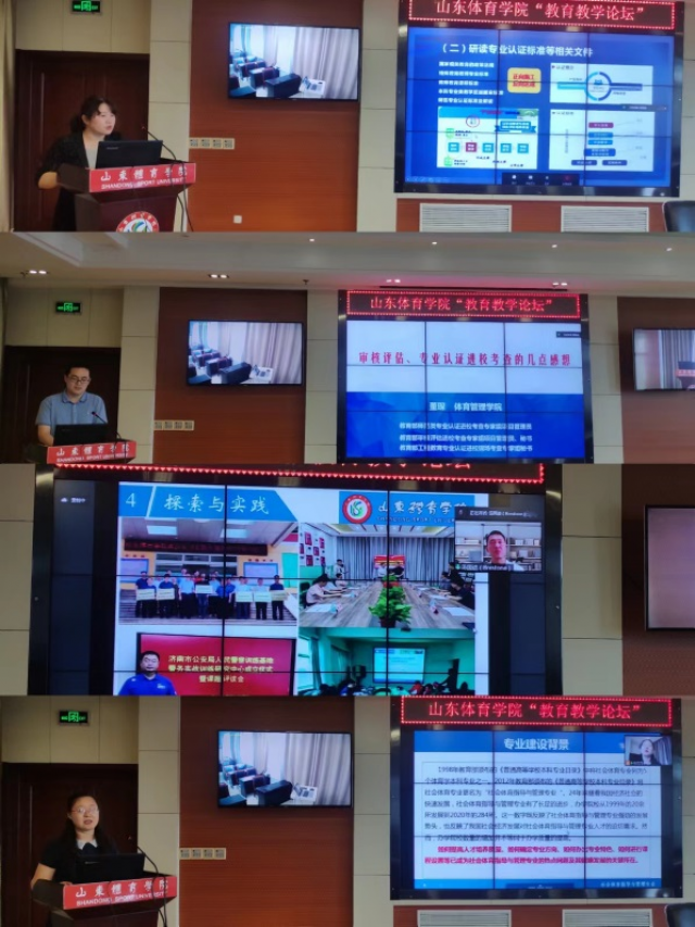 本次“教育教学论坛”,是学校“教育教学能力提升月”活动的重要组成部分。以“树师德 正师风强能力”为主题的“教育教学能力提升月”活动,通过“师德师风教育培训”“学校史、走进齐鲁体育文化”主题活动、“教师教学能力培训”和“教育教学论坛”四项活动,进一步强化了师德师风,提升了教师开展课程思政主动意识和实践能力、普及了线上线下混合式课程教学方式、树立了专业认证的理念和信心,为充分发挥教师教育教学主力军作用,为学校全面落实立德树人根本任务,提高人才培养质量进一步夯实了基础。