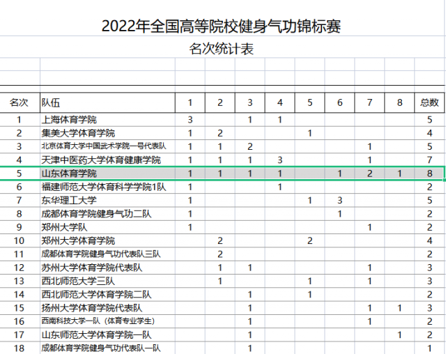 全国高等院校健身气功锦标赛是该项目最高级别的赛事。本次比赛取得佳绩,进一步扩大了我校健身气功项目在全国的影响力,提升了在健身气功领域内的话语权。