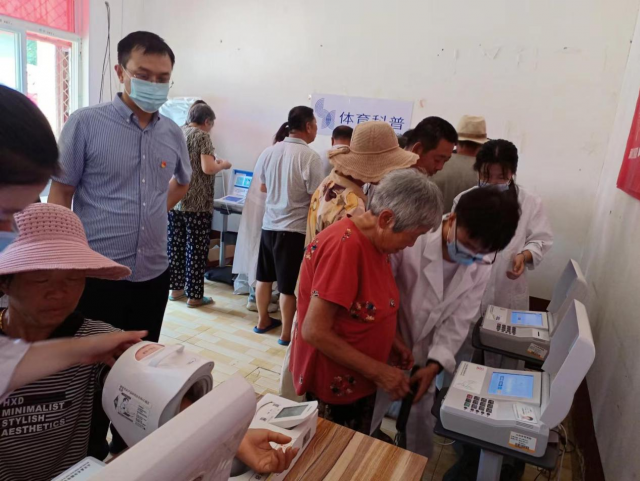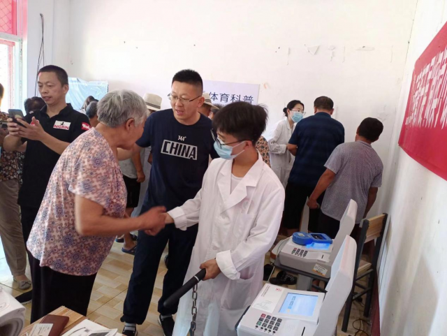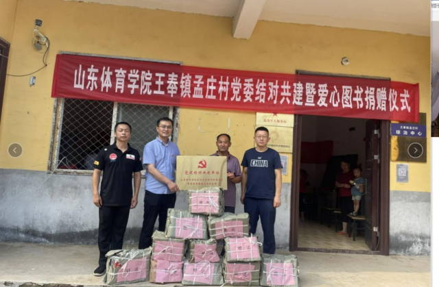 杨杰代表山东体育学院运动与健康学院党总支向孟庄村捐赠部分党建图书以及体育用品。山东体育学院国民体质检测车开进孟庄村开展服务工作,两支社会实践服务队为村民们进行了血糖、血压、体脂、体成分、反应时、骨密度等数十项体质检测,并为村民开出健康处方;同时,为村里的孩子们带来新兴运动项目—-极限飞盘,让乡村的孩子们也能感受到新兴运动项目的快乐。