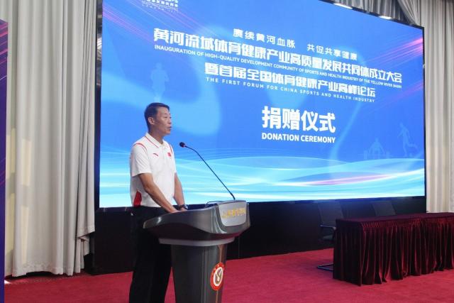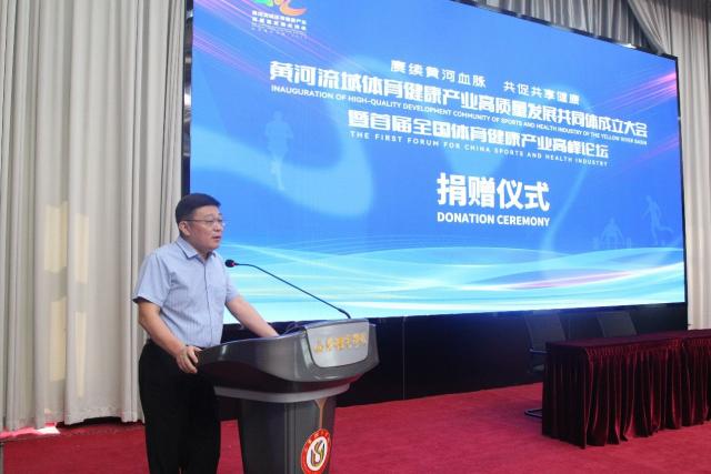 孙乐为代表山东体育学院致辞。他对各位企业家的到来表示热烈的欢迎和衷心的感谢。他指出,各位企业家积极支持本次“黄河流域体育健康产业高质量发展共同体”成立大会的召开和首届全国体育健康产业高峰论坛的举办,是深入贯彻落实习近平总书记关于黄河流域生态保护和高质量发展的重要讲话精神和指示要求、积极主动对接黄河流域体育健康产业需求的有益举措,充分体现了企业家的使命担当。为了感谢各企业一直以来的关心和帮助,山东体育学院将进一步发挥体育院校优势,在体育科学研究、体育产品研发、销售渠道拓展等方面与企业加强合作交流,为企业高质量发展提供切实的帮助。借助共同体成立大会这一良好契机,山东体育学院将打通沿黄九省与各企业之间的联系渠道,帮助企业挖掘近10亿人口的销售市场,促进企业走出山东,走向全国。