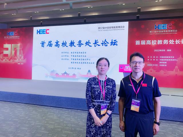 2022年8月4日,由中国高等教育学会主办、中国高等教育培训中心承办的“首届高校教务处长论坛”在西安国际会展中心成功举办。我校副院长兼教务处处长张佃波、副处长李荀参加了本次论坛。