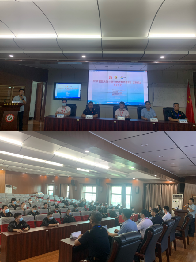 为加强武术兵道(短兵)专业人才队伍建设,助推武术兵道(短兵)项目的快速发展,更好地传承武术文化、弘扬民族精神,2022年8月4-10日,由国家体育总局武术运动管理中心、中国武术协会主办,山东体育学院日照校区、山东体育学院武术学院承办的2022年全国武术兵道(短兵)教练员、裁判员线下考核培训班在日照举行。山东体育学院日照校区管委会副主任赵孝彬、国家体育总局武术运动管理中心国际推广部副主任富博、山东省武术院副院长耿晓晨出席本次培训开班仪式并讲话。国家体育总局武术运动管理中心武术搏击部罗显松、山东体育学院武术学院院长张茂林、山东体育学院武术学院党总支书记王鲲、山东体育学院党委院长办公室副主任、日照校区办公室主任姚如胜、山东体育学院武术学院副院长刘凤虎、全国武术兵道(短兵)教练员裁判员考核培训班讲师温志超、许添洋参加了开班仪式,共有来自全省各地的50多名学员参加了本次考核培训。