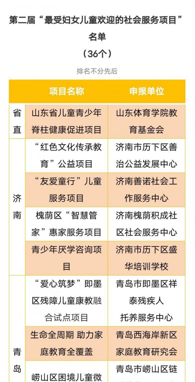 近日,第二届“最受妇女儿童欢迎的社会服务项目”活动结果揭晓,山东体育学院的“山东省儿童青少年脊柱健康促进项目”入选,是36个上榜项目中唯一一个省直项目。