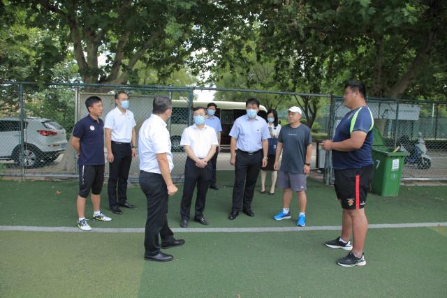 李波一行与张疆之进行了深入的交流,详细了解校区发展现状、师资力量、教学管理、训练竞赛等情况,到篮球训练馆和足球场观摩了运动训练专业篮球、足球、橄榄球专项队和校队训练情况,亲切慰问了校区一线教师代表。