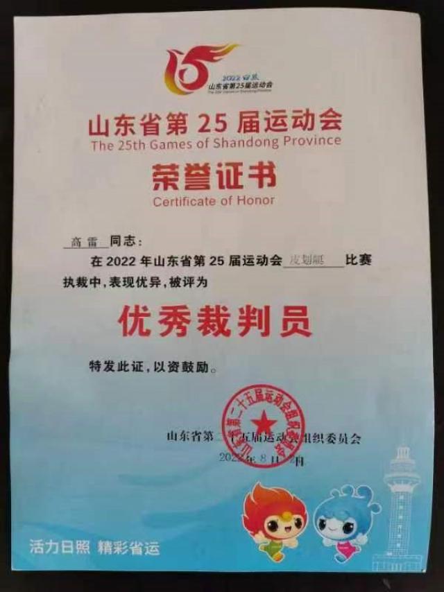 高雷,山东体育学院体育教育学院田径教研室教师,在此次山东省第二十五届运动会中担任皮划赛艇裁判,在皮划艇激流回旋项目临时党支部中担任支部委员一职,并在皮划艇比赛中获得优秀裁判员的光荣称号。