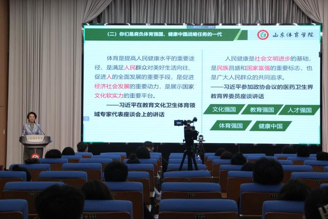 山体学子承担着怎样的历史使命?如何珍惜美好的大学时光?如何超越自我成就更好的自己?毛莉虹提出三个问题与新入学的“山体人”和顺利返校开启新学年的同学们共同探讨。她在授课中强调,个人的前途命运从来都与国家的前途命运休戚相关,青年强则中国强。作为新时代的青年大学生,欣逢建功立业的难得机遇,肩负着建设现代化强国的历史重任。从普遍性维度讲,你们是担当民族复兴大任的一代;从具体的职责任务讲,你们是肩负体育强国、健康中国战略任务的一代;从新时代大局特征讲,你们是肩负学习创新的一代。作为体育大学生,要认真学习和践行习近平新时代中国特色社会主义思想,不断增强“四个意识”,坚定“四个自信”,做到“两个维护”。要牢记习近平总书记对广大青年的嘱托,立志民族复兴,顺应时代大势,对标健康中国、体育强国建设新要求,在坚定理想信念中把控好方向,在涵养优秀品格中完善自我,在练就过硬本领中追求卓越,在勇挑时代重任中成长成才。