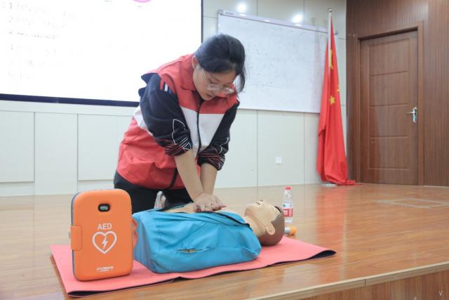 中国红十字会培训讲师孙珍妮用理论讲解、现场演示等方式向校区教职工普及了心搏骤停的概念和临床表现、抢救的黄金时间、基础心肺复苏术(CPR)和自动体外除颤器(AED)操作方法等科学知识,重点讲解了胸外心脏按压技术、人工呼吸方法和除颤器使用技术等急救步骤的动作要领和注意事项。