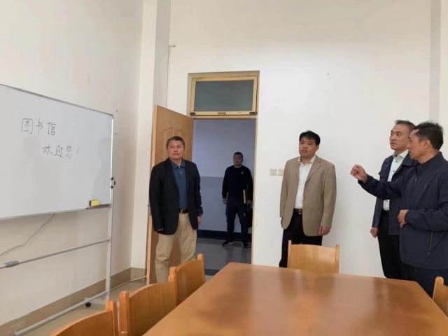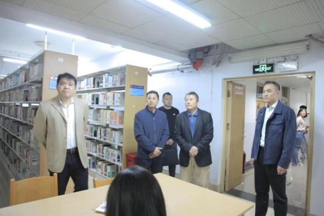 随后,张疆之一行到图书馆各书库、阅览室、研讨室调研。在体育书库,张疆之针对书库灯光昏暗、墙面潮湿、学生饮水等问题给出了具体解决办法,助力图书馆为师生读者提供更好的阅览环境。在焕然一新的阅览室里,赵孝彬关切地询问了读者的需求,鼓励青年学子要志存高远,方能登高望远。在新开放的研讨室,杜韬鼓励工作人员多宣传图书馆的信息资源和空间资源,充分利用研讨空间,为广大读者的教学科研活动提供便利。