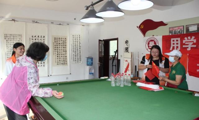 千佛山街道社工站的青年社工为老同志举办老年人桌上保龄球比赛和书画展活动