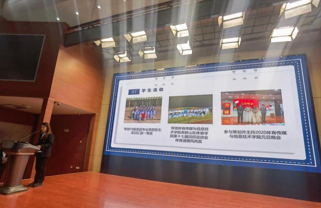 体育管理学院白震辉、运动休闲学院郭明坤、体育艺术学院史健菁、运动与健康学院司凤亮、体育艺术学院佀婧婕、体育传媒与信息技术学院王睿滢、体育艺术学院王若男7名省政府奖学金候选学生结合切身经历分别从思想修养、学业创新、工作经历、社会实践和志愿服务等方面进行了答辩展示。他们中既有乘风破浪、坚持不懈的创新创业能手,也有刻苦钻研、精益求精的学科竞赛获奖者,还有敢于担当、甘于奉献的最美“抗疫”志愿者,更有在庆祝中国共产党成立100周年的各种庆演活动中崭露头角的山体身影。他们积极投身服务健康中国战略,发挥党员先锋模范作用,带领身边同学学习党的二十大精神;他们秉承坚卓竞远、严勤创实的校风校训,积极践行新时代大学生的使命担当,德智体美劳全面发展;他们胸怀“请党放心,强国有我”的初心,以饱满的热情和昂扬的斗志,勇敢面对新任务、新挑战,努力拼搏,奋发有为,为更好服务全面建设社会主义现代化强国努力贡献山体力量。全面的综合素质,精彩的现场答辩,获得了评委的充分肯定和赞赏,也赢得了在场观众的阵阵掌声。