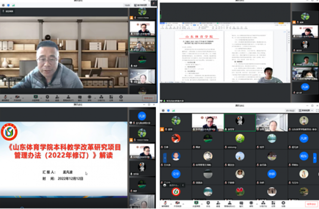 张佃波在会上就专业认证、教改课题、课堂教学改革、教师培训、教材选用、课程编排,以及校企合作等工作提出有关要求:一是要利用寒假的时间做好专业认证准备工作,运动与健康学院针对前期专业认证反馈的问题,及时查漏补缺,完善材料;体育教育学院要从各个方面、各个环节,细致地开展专业认证的材料准备工作。二是各二级学院要认真遴选推荐优秀课堂教学改革案例,通过优秀案例宣传推广示范,推动全校课堂教学改革。三是要务必做好学校教师的培训工作,通过各种平台开展培训或邀请相关领域专家进行讲座等多种方式,让教师在各种培训中受益,提升教育教学能力。四是要做好新学期教材选用工作,各二级学院严格按照选用程序,坚持凡选必审原则,把好政治关,学术关。五是要根据最新防疫政策,及时做好新学期线上、线下教学的准备,做好新学期课程编排等工作。六是推进校企合作办学相关工作,积极探索表演、体能训练、运动康复等专业开展校企合作办学,推进校企办学项目实施。