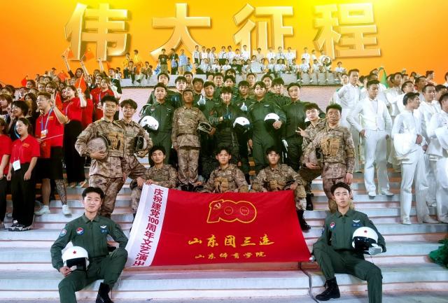 “齐鲁儿女展风貌,献礼华诞舞苍穹,百年征程铭记心,奋发勇当排头兵”,这是参编参演《伟大征程》山东体育学院师生自我勉励的口号,也是他们形象的写照。他们用实际行动诠释了“百年精彩,因你呈现”的自豪,展现了齐鲁儿女在国家最高水平舞台上争当排头兵的风采。(文/于爱丽 图/王嘉昊)