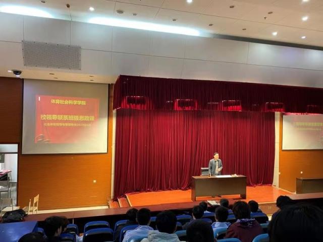 为深入学习贯彻党的十九届六中全会精神,进一步激发同学们爱党爱国热情,11月19日下午,学校党委委员、组织部部长任杰为体育社会科学学院社会体育指导与管理专业2019级1班全体同学,以“学习贯彻党的十九届六中全会精神,做实现中华民族伟大复兴时代新人”为题进行了思政课讲授。体育社会科学学院党总支副书记阚英坤、学生第三党支部书记刘钊参加了本次思政课听讲。