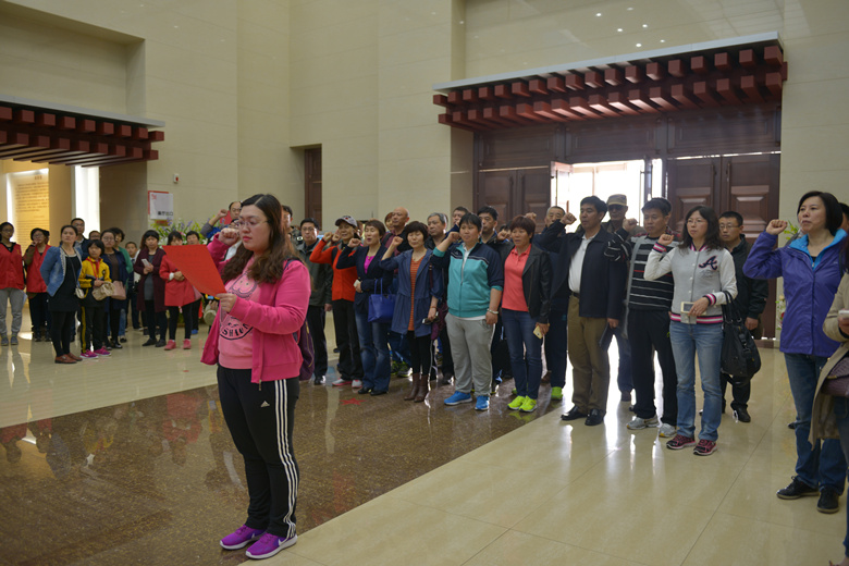 在孔繁森塑像前,参观学习的全体党员干部怀着崇敬的心情向孔繁森同志塑像深深鞠躬致意并敬献了花篮,并面向鲜红的党旗,庄严地举起右手,重温了入党宣誓词并逐人宣誓。在纪念馆展厅内,大家认真听取了孔繁森同志的事迹解说,孔繁森生前历时十载两次赴藏。1979年4月,孔繁森以国家利益为重,自觉服从组织安排,告别年逾古稀的老母、体弱多病的妻子和年幼的孩子,到海拔4700多米的西藏自治区岗巴县任县委副书记达3年之久。1988年,孔繁森再次离开家乡赴藏工作,他舍小家,顾大家,多次亲赴基层,为群众排忧解难,同当地藏族人民建立了深厚的感情;为西藏的建设、发展和稳定作出了突出的贡献,1994年11月,时任西藏阿里地委书记的孔繁森不幸以身殉职,谱写了一曲感人至深的奉献之歌、奋斗之歌。在十余年援藏工作中,他严以律己,清正廉洁,赢得藏族同胞的爱戴和尊敬。