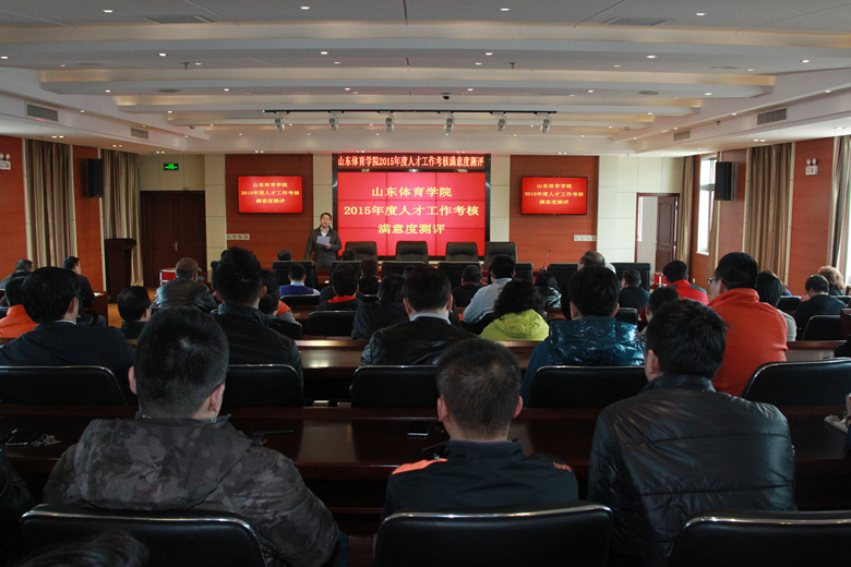 本次考核是根据中共山东省委组织部、山东省教育厅印发的《山东省高校人才工作目标责任制考核办法(试行)》,定性与定量赋分相统一,采取学校自评和省人才工作领导小组派驻的人才考核组实地考核相结合的方式进行。在实地考核听取学校汇报、组织教职工满意度测评、召开人才代表座谈会、查阅人才工作相关文件材料、查看山东省科学健身指导中心和体育科学研究院等人才工作平台后,考核组对我校一年来人才工作取得的成绩给予了高度评价和充分肯定,认为山东体育学院党政领导班子高度重视人才工作,大力实施以“人才强校”为先导的五大发展战略,人才工作机制、高层次人才引进、制度建设、人才培养、绩效奖励等方面均取得良好成绩。同时,考核组也希望我校以这次考核为契机,进一步巩固人才优先发展的战略布局,把人才工作摆在更加突出的位置,加大人才体制机制和政策创新力度,强化人才平台载体建设,进一步提高高层次人才服务水平,加强人才工作的监督检查,努力做好各项人才工作。