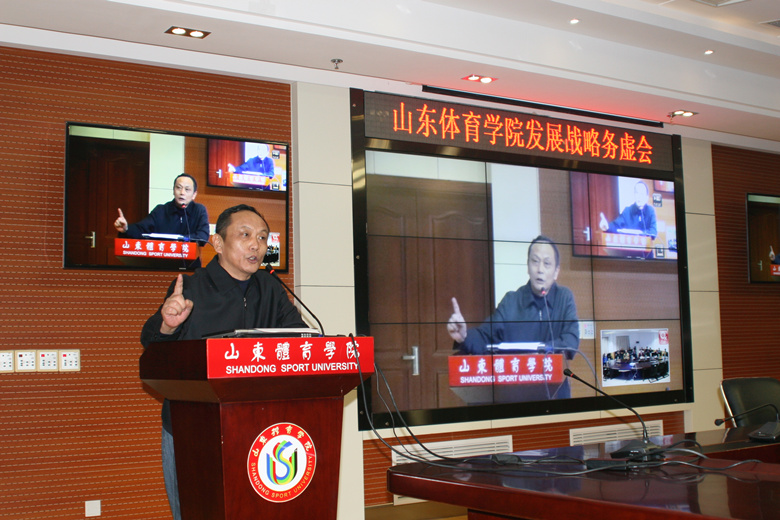 为进一步做好学校“十三五”时期各项事业发展规划的编制工作, 12月23日—24日,学校在办公楼6楼会议室召开发展战略务虚会,党委书记王毅做重要讲话,党委副书记、院长韩冬主持会议,学校党政领导和各部门负责人共42人分别作了专题发言,每位发言人都精心准备,认真对待,针对学校“十三五”期间的发展定位、发展理念、人才队伍建设、教育教学改革等方面内容出谋划策,悉心探索,其中不乏睿智之谋、奇葩之策。大家群情激昂,精神振奋,刮起了一场编制规划、布局谋篇的思想风暴。本次视频会议主会场设在济南校区办公楼6层会议室,分会场设在日照校区办公楼第二会议室,全校副处级以上干部参会。