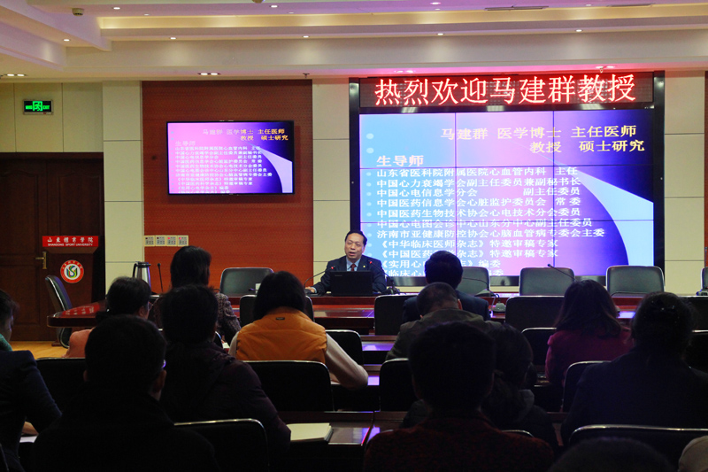 11月13日下午,由院工会举办的健康讲座在办公楼6楼会议室举行。本次讲座邀请了山东省医学科学院附属医院心血管内科主任、医学博士、研究生导师马建群教授主讲。党委副书记张云龙和学校师生一起听取了讲座。