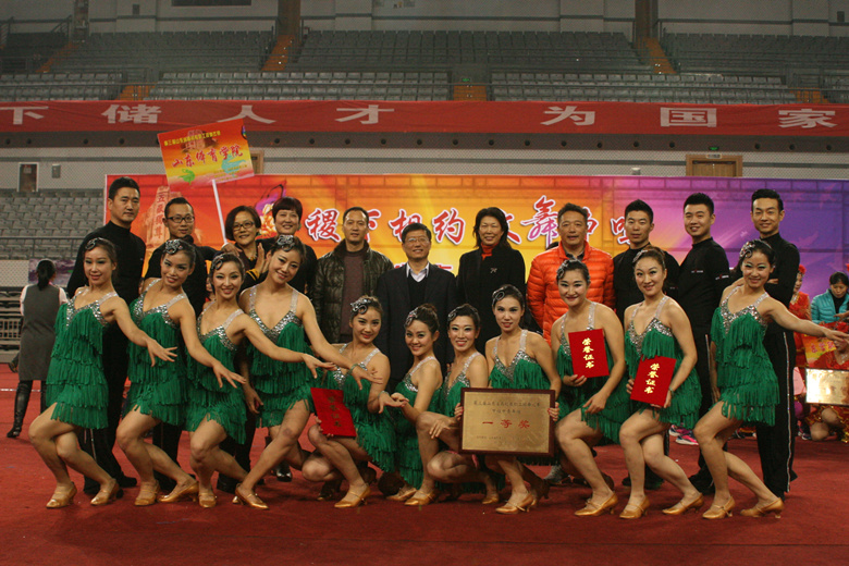 我校代表队以体育艺术系教师为主,研究生部和体育社会科学学院部分教师参与,共由11名女教工和5名男教工组成。这是一支战绩辉煌的队伍,曾获2011年全省高校教职工排舞比赛冠军,并代表山东省高校参加过全国比赛。教练祝文钢和队员们反复切磋技艺,周密设计编排,刻苦训练,使这次比赛表演更具艺术性、观赏性和吸引力、震撼力。在19日上午的规定单首曲目《阿拉伯之眼》比赛中,我校代表队获得9.525分的高分。在下午自选串烧曲目《加勒比明珠》、《吉他恰恰》、《剧场探戈》比赛中,他们以整齐的舞步、优美的身姿、娴熟的技能,展现出十足的震撼力和感染力,赢得了观众阵阵喝彩和热烈的掌声,以9.738分的成绩高居榜首,充分展示了我校教职工团结奋进、敢于拼搏的精神风貌,展现了我校教师的专业水平和全民健身活动水平,为学校争得了荣誉。