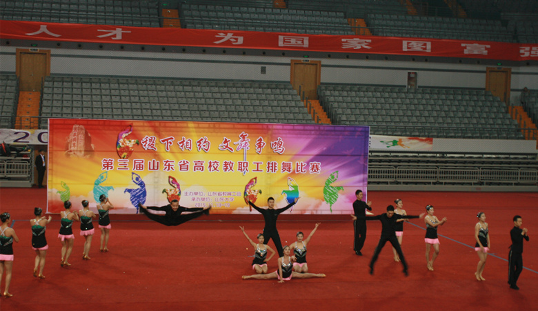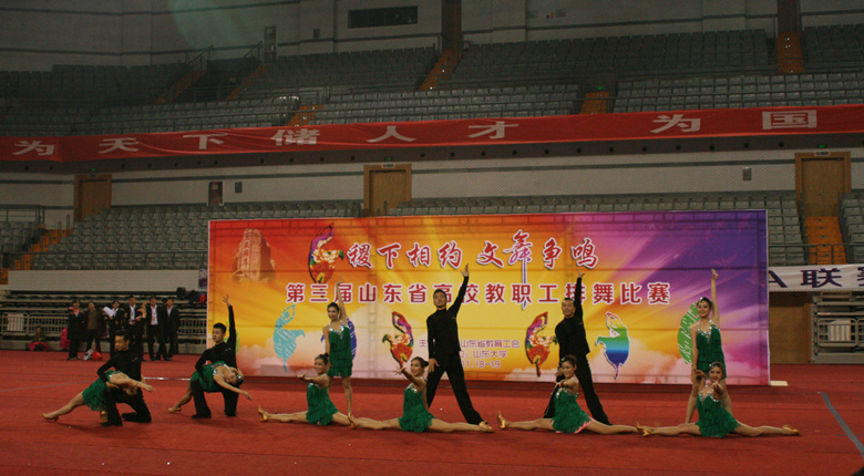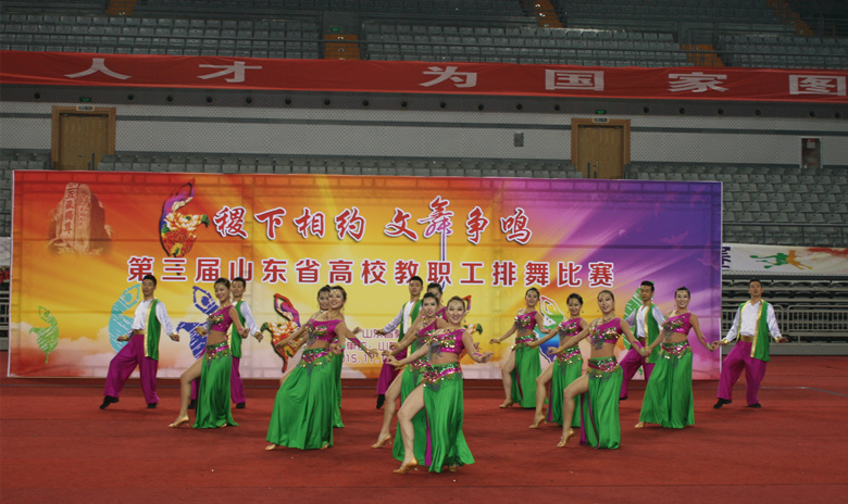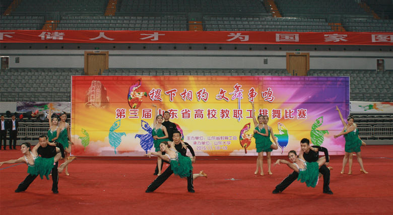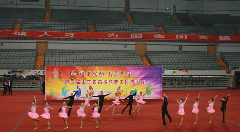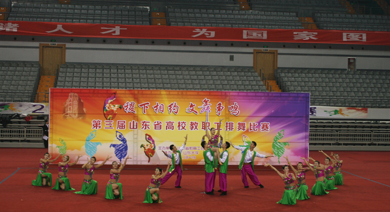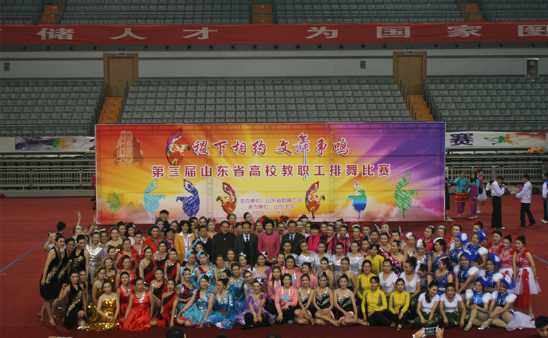 由省教育工会主办、山东大学承办的第三届山东省高校教职工排舞比赛,11月19日在山东大学中心校区体育馆隆重举行。来自全省29所高校的500余名教职工参加了比赛。我校由党委副书记、纪委书记张云龙率队,派出16人组成的代表队参赛,以总分19.263分的成绩获得一等奖第一名。我校在此次大赛中还分获了“优秀编导奖”、“优秀教练员奖”、“优秀组织奖”、“最佳编排奖”、“最佳表演奖”,杨亚奇老师获得了“优秀运动员奖”。