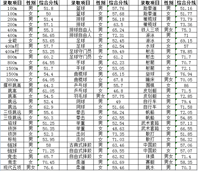 2015年山东体育学院运动训练专业文化最低录取控制线为195分;