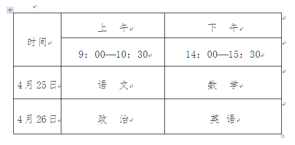考试科目:语文、数学、政治、英语;