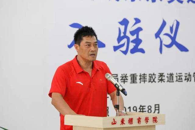山东体育学院党委书记、中国举重协会副主席王毅出席仪式并致欢迎词,山东省体育局党组成员、副局长张柄臣出席仪式并讲话,奥运金牌教练员、国家举重队男队主教练于杰作转训动员发言,奥运冠军吕小军、石智勇代表队员作表态发言。入驻仪式由山东体育学院党委委员、副院长、日照校区管委会主任毛莉虹主持。