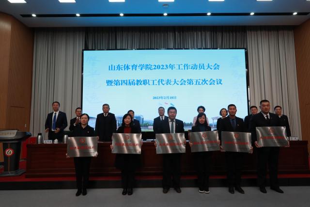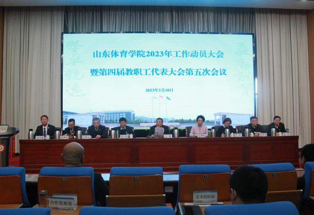 2月18日上午,学校召开2023年工作动员大会暨第四届教职工代表大会第五次会议。学校领导王毅、毛莉虹、张云龙、李新、任继滨、张疆之、孙乐为、张佃波、任杰、连增威出席会议。教代会正式代表及列席人员、全校处级干部、党支部书记和部分学生代表参加会议。济南校区设主会场,日照校区分会场以视频会议形式收听收看。会议由党委副书记张云龙主持。