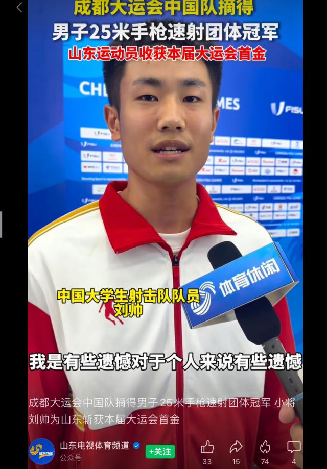 【山东电视体育频道】男子25米手枪速射团体赛/ 山东运动员(山东体育学院2021级刘帅)收获成都大运会首枚金牌
