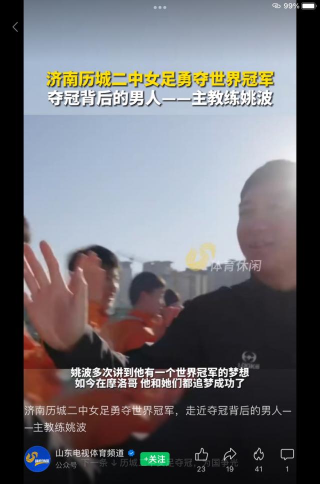 【山东电视体育频道】济南历城二中女足勇夺世界冠军,走近夺冠背后的男人——主教练姚波