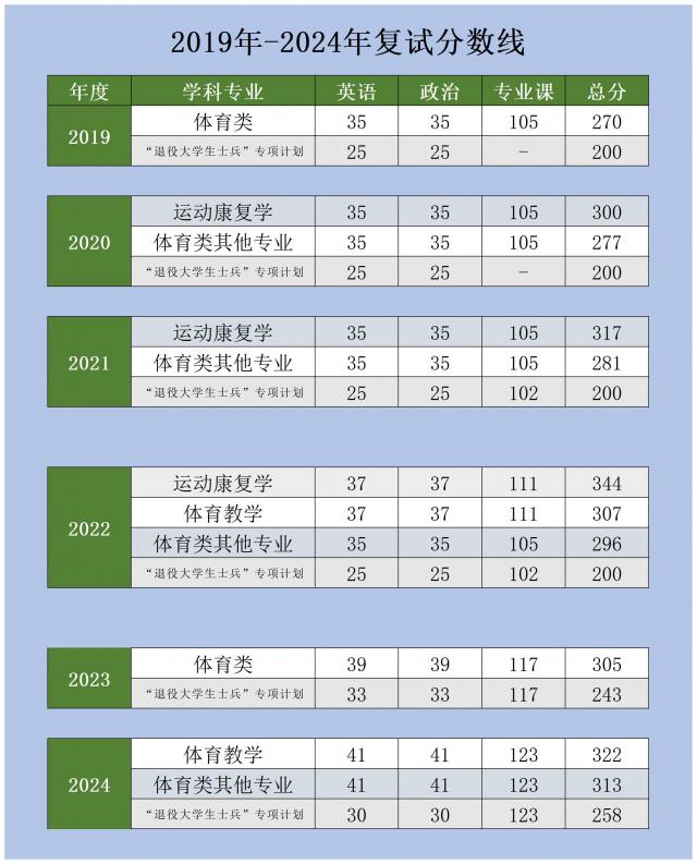 山东体育学院硕士研究生2019年-2024年复试分数线