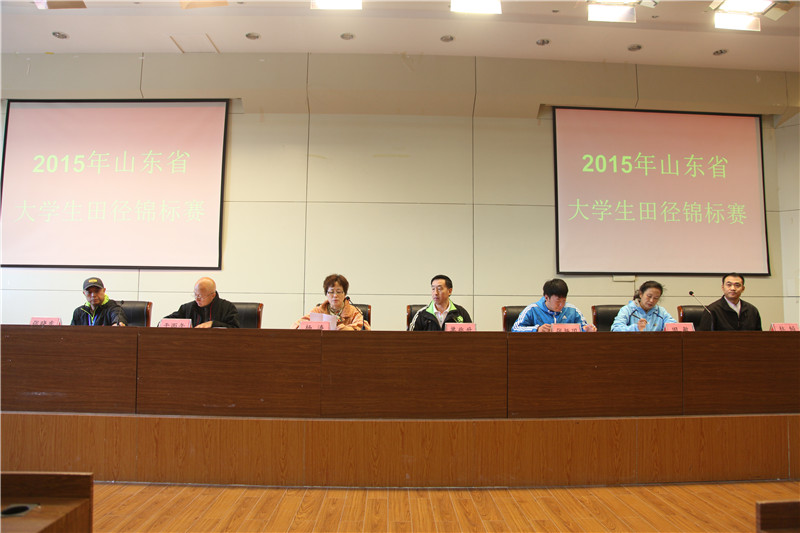 10月30日,“2015年山东省大学生田径锦标赛暨2017年全国学生运动会山东省田径选拔赛”赛前动员会,在我校日照校区综合楼五楼报告厅召开。山东体育学院日照校区管委会副主任单兆升,山东省学校体育协会副会长杨涛,协会竞赛处张振国,赛事技术代表于丙午,山东体育学院日照校区各相关部门负责同志出席动员会。会议由山东体育学院竞赛训练处处长张晓东主持。