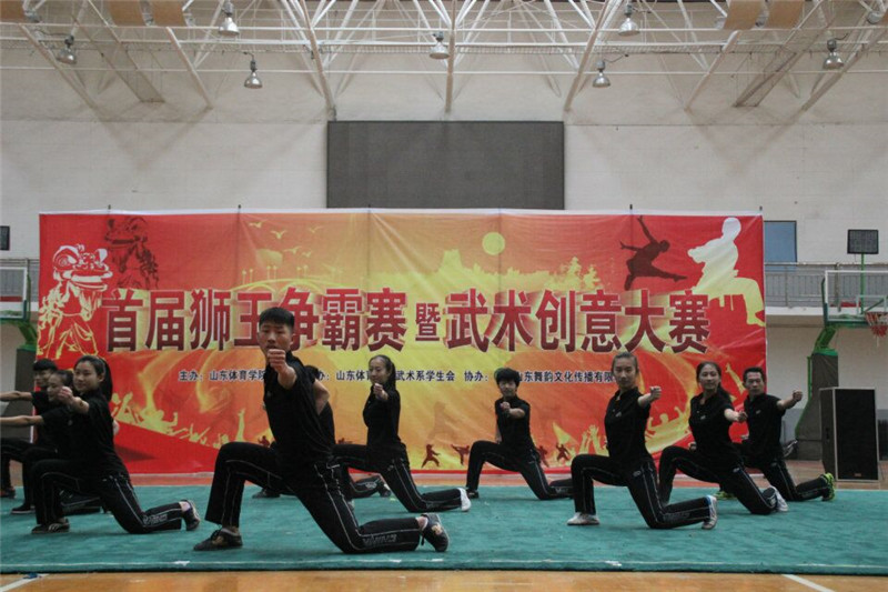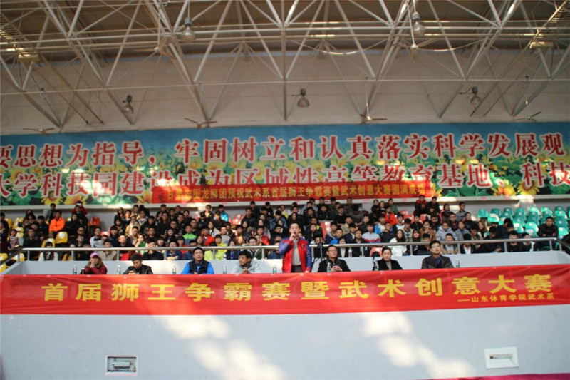 2015年11月29日,由武术系主办、武术系学生会承办的“首届狮王争霸赛暨武术创意大赛”在日照校区篮球馆正式拉开帷幕。日照校区管委会副主任单兆升出席开幕式并宣布大赛正式开幕,教学督导组组长刘美奋、武术系党总支书记任日辉、学生处副处长张凉、团委副书记桑辉出席开幕式。开幕式由武术系张茂林老师主持。